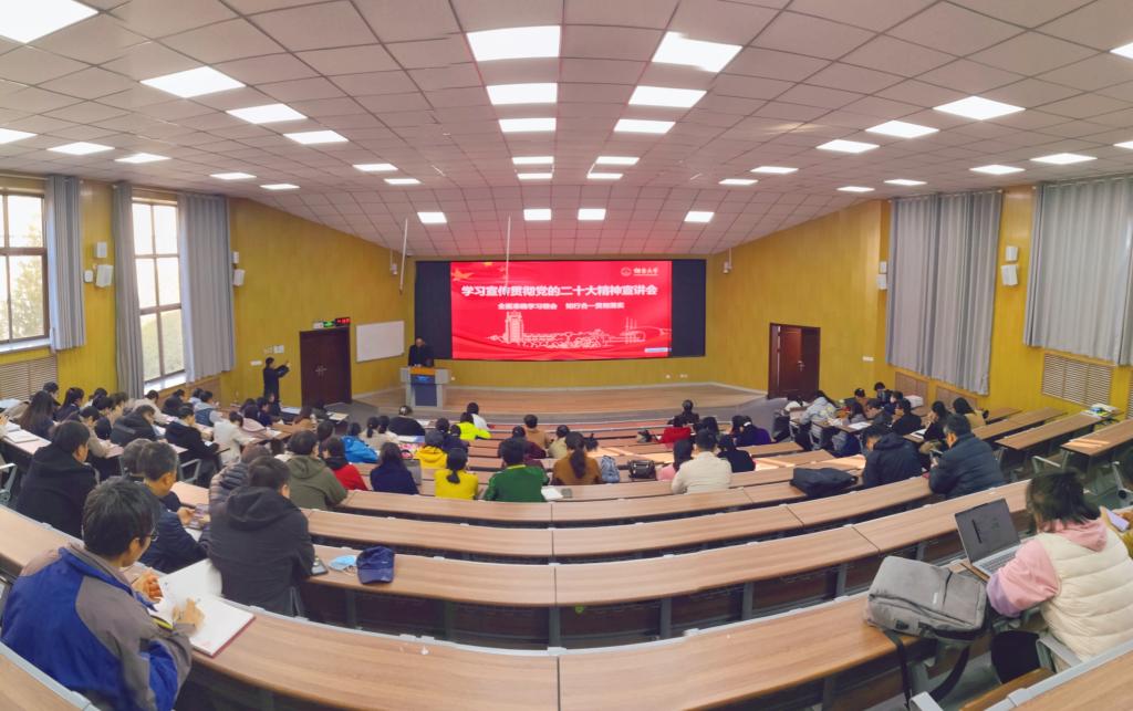 王者旭在宣讲中紧扣党的二十大主旨内涵与重要意义,围绕中国式现代化、马克思主义中国化时代化、过去5年的工作和新时代10年的伟大变革、全面建设社会主义现代化国家的目标任务、坚持党的全面领导和全面从严治党、持续推进学校高质量发展等八个方面展开,同时表明,全体教职工都要坚持把思想和行动统一到大会精神上,坚守共产主义信仰和立德树人根本任务,戮力同心、勇毅拼搏,为学校高水平大学建设目标贡献生科力量。