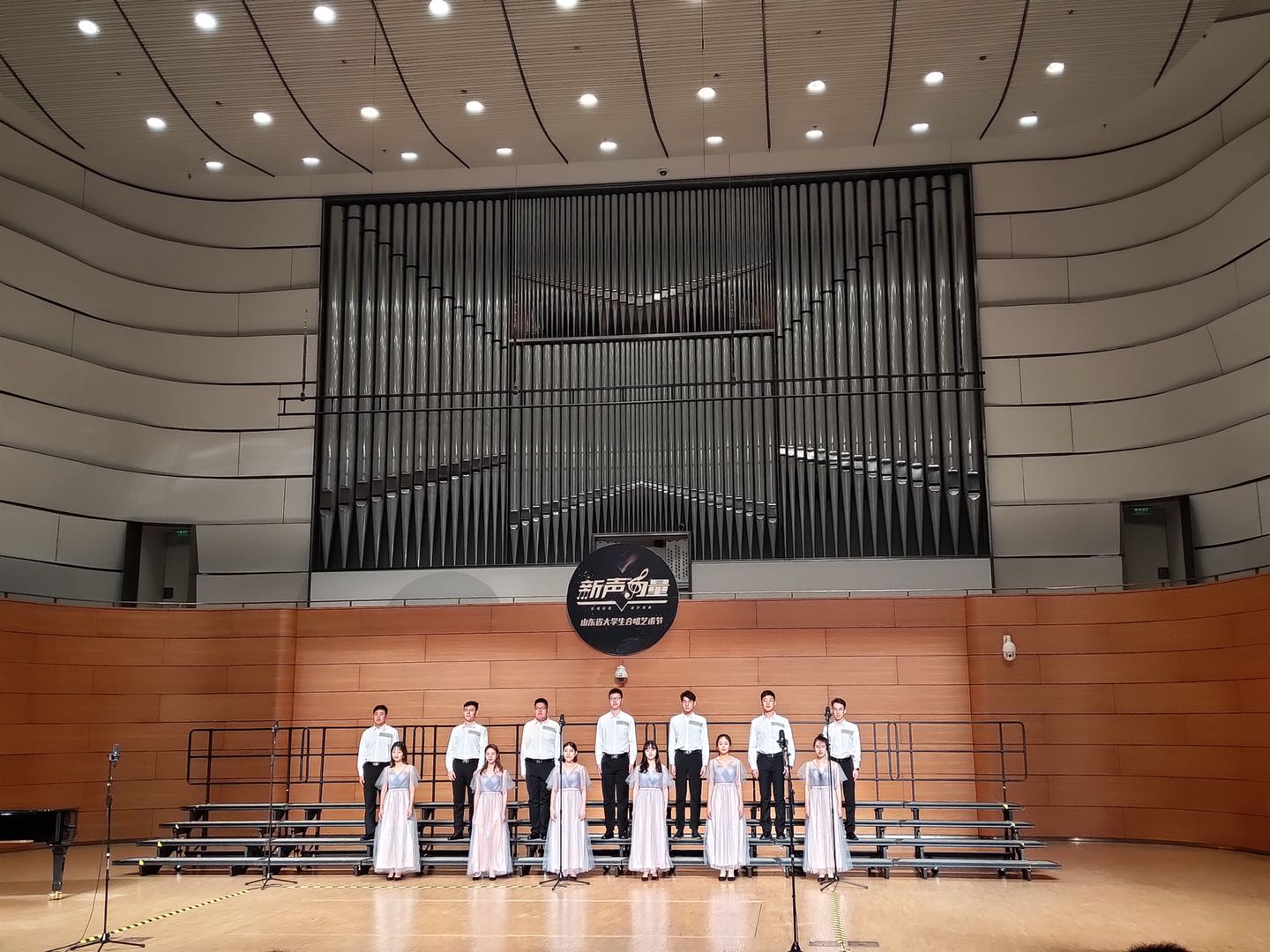 齐鲁育美,悦动中华,为庆祝中华人民共和国成立70周年,唱响爱党、爱国、爱社会主义的时代主旋律,由山东省教育厅主办的2019年“新声力量”山东省大学生合唱艺术节决赛于12月2日—12月4日在青岛大剧院举行。经历了来自各大高校的近160支团队的激烈角逐,aa3044永利集团天空合唱团(非专业组)成功晋级30强,凭借一曲《我喜欢》获非专业组二等奖。