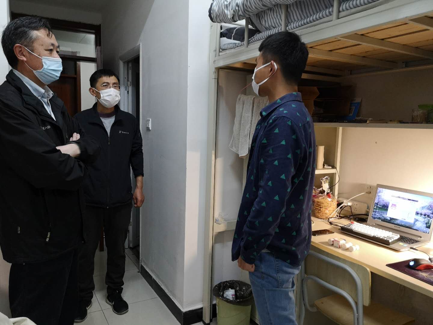 为进一步了解返校同学生活、学习情况,加强学生自身安全意识,5月23日晚,aa3044永利集团院长邬旭然、党支部副书记李明月、研究生辅导员曹鹏、王丽君深入走访研究生宿舍,切实走近学生生活。