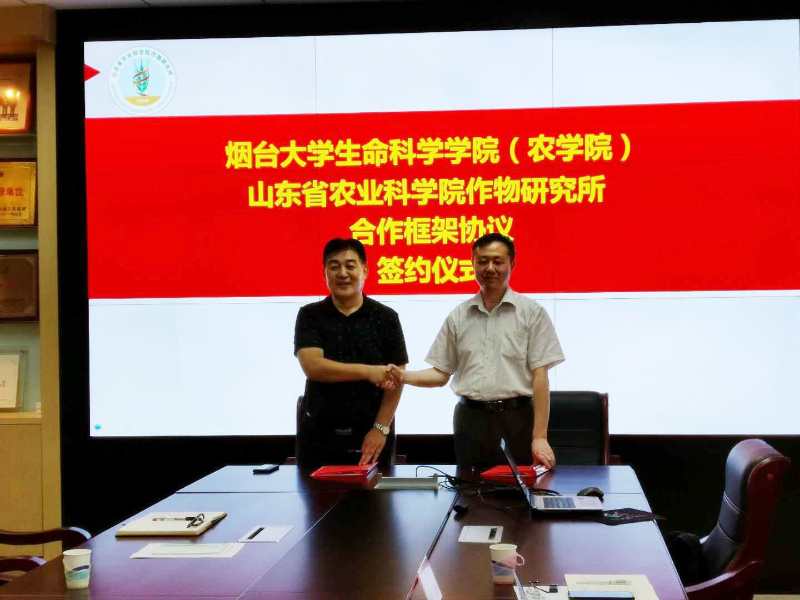 为加快创新创业人才培养,促进高校与科研院所融合发展,助推山东省新旧动能转换,更好地服务地方经济社会发展,8月6日,aa3044永利集团(农学院)邬旭然院长、泰山学者宋建成教授、院长助理兼生物系主任赵振军和马朋涛博士一行4人赴山东省农业科学院作物研究所进行考察学习、对接交流,并签署合作框架协议,得到了作物所理事长兼党委书记刘开昌研究员等领导和相关专家的热情接待。