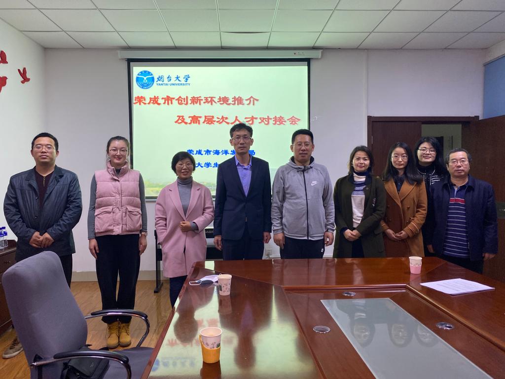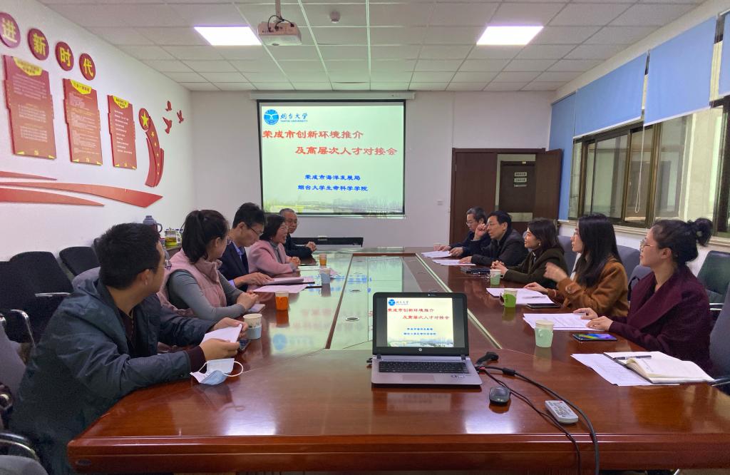 11月18日下午,山东省荣成市海洋发展局刘宁站长带队来访我院,在化东218会议室与我院开展了荣成市创新环境推介及高层次人才对接会,学院党总支书记张仁旭,副院长孙利芹、林剑及部分研究生导师代表、青年教师代表参加会议。