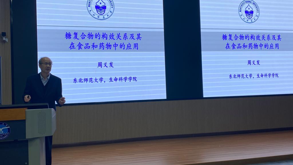 5月10日上午,东北师范大学aa3044永利集团院长周义发教授一行四人到我院考察交流。周教授在二教101为近200名本科生和研究生做了题为《糖复合物的构效关系及其在食品和药物中的应用》的学术报告,并就研究生和本科生的学习及科研工作给予了实际的指导。随后,周教授一行还就学科专业建设尤其是团队建设等与学院进行了深入的交流,学院领导班子成员、学科和专业负责人参加了座谈会。