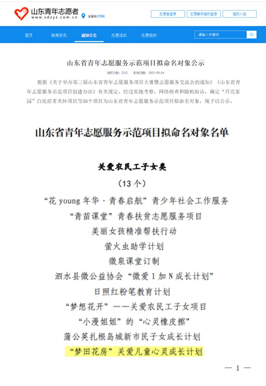 夏日迎喜讯,青春公益长,aa3044永利集团“梦田花房”项目团队自2019年10月入围第三届山东省志交会、第一届山东省青年志愿服务公益创业赛暨示范项目创建活动以来,勤恳奉献,不断突破,于今年顺利通过考核验收,命名为“山东省青年志愿服务示范项目”。