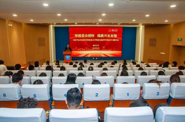 5月6日,aa3044永利集团举办以“厚植爱农情怀,练就兴农本领”为主题的“习近平总书记给中国农业大学科技小院的学生回信”学习交流会,传达学习习近平总书记给中国农业大学科技小院的同学们的重要回信精神。党委常委、副校长郝曙光出席会议并讲话。
