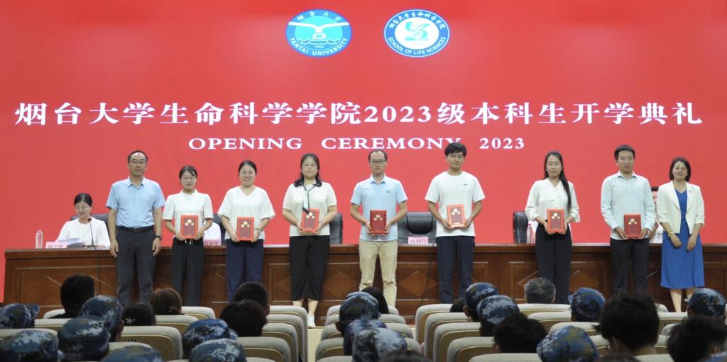 典礼在奏唱国歌中拉开帷幕,随后,院长孙利芹以“在生科,向未来”为主题,通过“厚植家国情怀,立大志,堪大任”、“尽快转变角色,建立学习型思维,掌握真本领”、“砺行致远、涵养自身”三方面,勉励353名新生珍惜韶华、全力拼搏,在“海纳百川 敢为人先”的引领中,执青春之笔,答出属于烟大生科人的时代之问。aa3044永利集团2023年度优秀教师甘晶从“亦师亦友”视角,深情寄语新同学们秉承“尚礼博学 生生不息”的院训,永葆爱国情和奋发志,用点滴勤奋勾勒金色青春、创造璀璨人生;院学生骨干张文硕领誓“成人礼”,用特别仪式铭记生科人“砥砺成长 报效祖国”的求学初心;新生代表邵佳一在“为梦而来”的体验中,表达对学院的爱与憧憬,最后,院领导为军训优秀教官及学员代表颁发荣誉证书,同时为新生导师、导助颁发聘任证书。