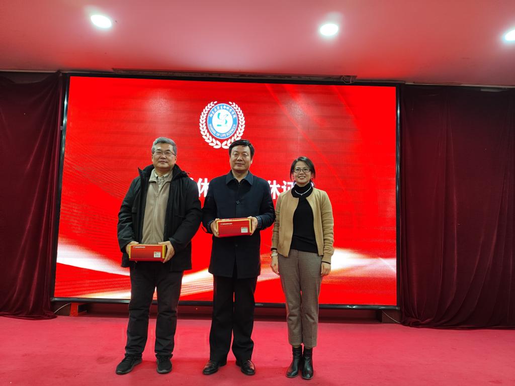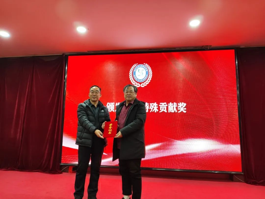 大会第三环节,孙利芹院长为退休教师代表单守水教授和陈世华教授颁发“荣休证书”,王者旭书记为烟台市农业科学研究院副院长姜中武颁发学院“特殊贡献奖”证书。
