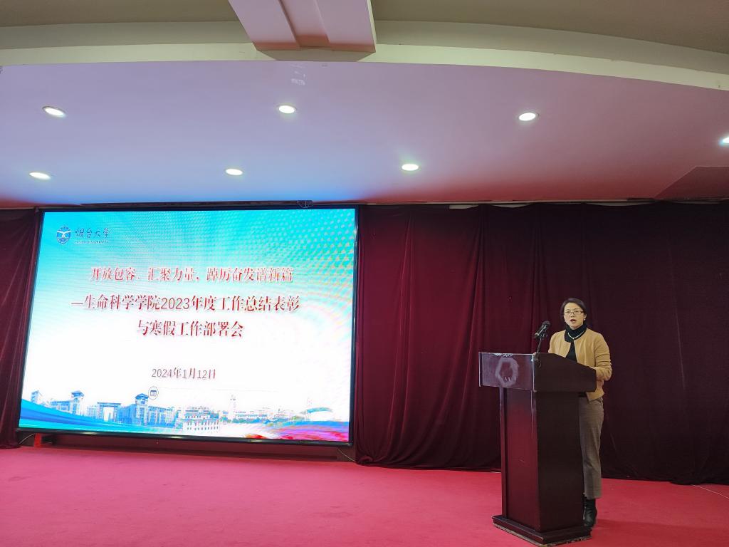 最后,院党总支书记王者旭作总结发言,对学院全体教职工为学院发展做出的成绩表示认可与感谢。同时,对2024年学院发展提出三个要求,一是通过加强党建引领、制度体系的完善、高层次人才引育、重大重点项目培育加强平台建设;二是培养具有专业能力强、综合素质高、动手能力强的复合型、创新型人才;三是要学在深处、谋在新处、干在实处,增强战略定力,坚定战略自信,提升学院的核心竞争力。王者旭指出,新的一年全体师生要继续挺膺担当,不断推动学院高质量发展,为学校高水平大学建设和四十周年校庆贡献学院力量。