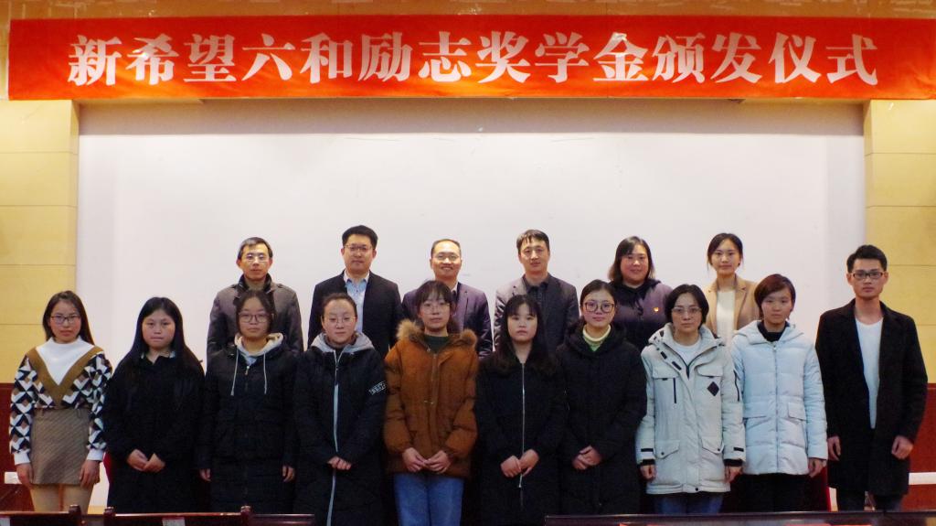 “新希望六和励志奖学金”由新希望六和股份有限公司全额出资设立,总金额为一万五千元人民币,每年评定一次,每次评选十名同学,每人一千五百元,奖励品学兼优的贫困本科毕业生。